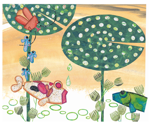 但是,他從此養成一個習慣:每當看到一顆露珠從荷葉上落下來,他都要數一下。他知道,這露珠的味道,還沒有它的聲音來得逗人喜愛。他相信,等他聽到第一百顆露珠下水的時候,他一定會變成一條更堅強、更幸福、心地更善良的鯉魚。