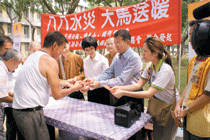 【人間社記者心彌、李雅婷大樹報導】「八八水災、大馬送暖!」馬來西亞佛光山、星洲日報和國際佛光會馬來西亞協會為台灣水災募款,短短十天募得七百八十二萬元新台幣,全數捐贈災民,昨天一行人到災區探望災民,拿到紅包的民眾感動地說:「遠渡重洋的愛心,特別溫暖」。