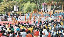 【人間社記者李雅婷大樹報導】「粉墨登場—二○○九兒童歡樂藝術節」昨日在佛光山開幕,來自南部五個佛光童軍團及大樹鄉八所國小學童、家長及鄉民約二千人,齊聚不二門前,讓平日寧靜的佛教殿堂充滿活力和歡笑。
