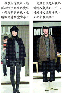 披掛式層次穿搭,更增加秋冬流行的趣味與變化感;配件則講究多樣性,例如多用途披肩、頸圍及帽子等,可依自己中意的造型來搭配,隨性變化出個性化穿法,此外馬靴與中厚型褲襪,也大幅增加視覺驚喜感,可說是秋冬兩季必備的人氣單品。