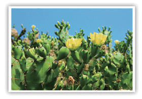 仙人掌長得扁平如扇。鮮黃色的花朵綻放在枝緣,遠遠望去,彷彿是海邊迎風搖動的扇子。傳說仙人掌能避邪,所以有些鄉野人家喜在戶外種仙人掌,驅災避邪。《台灣通志》上即有一記載,說是仙人掌「植之牆外,可避火災」。