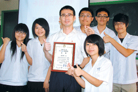 新化高中生物科老師呂念宗(中)獲今年Power教師獎表揚,學生都說讚。吳淑玲攝