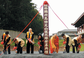 紐西蘭北島蓮池塔安基典禮,由國際佛光會中華總會總會長心定和尚主持,多位貴賓一同執鏟。人間社記者劉盎齊攝