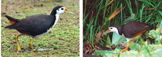 不過牠們很害羞,往往只聞其聲不見其影。下次你可以好好尋找牠們的倩影,或許看不到鳥影,但可以聽聽看,是否有鳥在「苦哇苦哇」的叫著,那準是白腹秧雞。