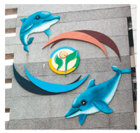踏進校園,首先映入眼簾的是,在整幢大樓的牆壁上,彩繪一幅巨大的校徽圖騰,鮮明躍眼的色彩,飛躍的海豚,造型突顯活潑,與景致優美的校園相互輝映,格外醒目與美觀。校徽因具有代表學校的意象與形象標誌,而塗城國小校徽除具有創意,並且豎立校門口,獨樹一幟,給人特別深刻的印象。