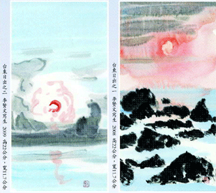 【五苓山居筆記】日出台東 李賢文 |2009.10.18 語音朗讀 1209觀看次 字級 大 中 小 如果台灣每一個縣市鄉鎮,都能自行開創或由歷史中去尋找在地的美的代言,則台灣將是令人嚮往的國度。「太陽低頭發笑,笑人們為何那樣匆忙,不去海邊看她!」這句話出自一位祖籍安徽,被譽為「陽光之子」的畫家丁學洙(一九一三~二○○二)。在生命中最後的三十四年,他以台東為家,年輕時在上海美專學畫的潛力,因台東太陽光而甦醒。「日日晨起海邊,坐畫海上太陽光。」是他的寫照;以無窮的熱情等待日出,以直覺奔放的點線,他將陽光鋪灑在畫面上。如是,他創造許多以陽光為主題的粉彩畫,如「海天系列」與「田園系列」。同時,他的畫作也在無意中成為綿延一百七十六公里海岸線,擁有全台最佳日出美景的台東,美的代言。談到以畫為鄉鎮代表,讓我想到日本畫聖雪舟等楊(一四二○~一五○六),晚年完成的水墨畫〔天橋立圖〕,如今已成為日本三大美景之一「天橋立」美的代言。當旅客到天橋立車站,即為一張張的大海報所吸引,上面刊印雪舟描繪天橋立的名勝地,如迴旋橋、傘松公園、伊勢籠神社、文殊寺、成相寺等。時隔五百年名勝與名作俱在,令今之旅人有如進入時光隧道,走入雪舟畫中。而雪舟為天橋立留下一句名言:「對風景的愛情,對天橋立的嚮往。」更興發人們浪漫的想像。國立台灣史前文化博物館收藏二件丁學洙畫於一九八八年的〔台東日出圖〕。其中一件,丁老在畫中以斗大的字,自書「八六老人丁學洙,眼花手抖,每晨走觀台東日出,心中喜悅,今十一月十一日,興發揮筆,寫寶島奇觀,台東日出。」此作終結他長期面對台東大自然的寫生經驗,而以自己的筆墨創造心中山水,表現台東杉原灣的日出美景。奇特的是畫中紅紅的太陽竟在海平面之下!或許是畫家應用傳統美學中多視點畫法,由山上觀日出,太陽彷如在海面下;也或許畫家之心與太陽貼近的關係,將不合理化成合理;此外,紅太陽放在畫面左下方,有如一顆閒章蓋在水墨畫上,此時太陽也就不一定是太陽了。雪舟以「天橋立」為戀人,而丁學洙則視「太陽」為慈母,他們共同以畫顯愛,古今輝映。近年來,每逢有台東之行,我一定借宿台東畫友L君的海濱小築,不論多晚睡,次日一定在日出前到海岸邊觀日畫日。一樣的日出,一樣的台東,卻是每次都有不一樣的感受。尤其是看到紅通通的太陽,瞬間一點一點上升、跳動,美的一剎那,畫筆是不容遲疑的。此時心靈直覺帶動了本能筆觸,流露出童畫般純稚線條與亮麗色彩;沒有技巧公式,只有當下感動。由於台東富有自然美景,吸引好幾位外地畫家成為台東新移民。台北畫友C君也在台東海岸山腰蓋有一棟自己設計的畫室,日日享受陽光,其抽象畫也因此多了色彩、高了明度。如果類似丁學洙這樣的文化人,受到更多的珍重與推廣,則台東美景,將因美術而發光,因音樂而增輝,因文學而添加意境……事實上,台灣各地都有不同的美景與優秀的文藝工作者。如果台灣每一個縣市鄉鎮都能以一張畫、一曲歌、一首詩,乃至一本小說作為美的代言,文化的象徵,則台灣將成為一個令人嚮往的國度。 前一篇文章 【智慧語錄】草草打個漢 下一篇文章 【風言風語專欄】師友 熱門新聞 01桌球年終賽激戰 林昀儒力爭晉4強2025.12.1202【研朱札記】 臺灣第一本訪碑專著 《北臺灣之古碑》與石坂文庫2025.12.1103泰國合艾水災 佛光山送暖助復原2025.12.1104光明大學宿霧藝術學院 三好音樂劇放光采2025.12.1105岩層中 古代地震線索2025.12.1106多倫多佛光山 佛光人行佛精進獲獎2025.12.1107佛光山人間大學新馬分校 結業展示所學2025.12.1008毛利武士獻玉石戰舞 交流北島佛光山2025.12.1009【童詩.童思】 柳丁花2025.12.1110佛羅里達佛光人捐玩具 陪兒童開心過年2025.12.10 訂閱電子報 台北市 天氣預報 台灣一週天氣預報 相關報導 作者其他文章【舊好茶記事】回望雲豹文 山 春 秋 泉自奔忙月自遲 文山春秋 驪歌響起【作者說】 美的軌跡 凡走過的必留下痕跡