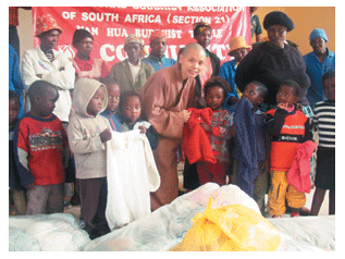 今年南非豪登省夏季時降雨量相當充沛,致使四月秋末季節顯得格外寒冷,有鑒於此,南華寺特募集禦寒衣物,並與Zithobeni的市政府及社福單位合作,探視貧戶捐贈衣物。