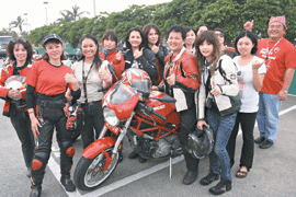 「若沒親眼看到,沒有人相信我會騎耶!」車隊中年紀最小的邱妙君二十四歲,體重四十四公斤,她說,因男友是重機車迷,也愛上重機「路人看我騎重機、瞪大眼的表情,好有趣,會騎,真得超酷的」。