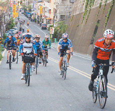 「二○○九騎單車挑戰部落高峰雪見之旅」昨天展開,各地單車好手挑戰全程平均坡度十三度的路程,考驗體力耐力。 祁容玉攝