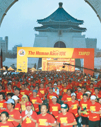 【記者李宇政台北報導】儘管台北昨天清晨細雨綿綿,仍有上萬人到中正紀念堂參加「Nike+Human Race II」路跑活動。我國馬拉松國手鄭子健,僅花三十三分二十一秒完成十公里賽程,是「全世界」第一名抵達終點的馬拉松選手。
