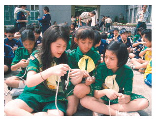 此外,台南新營講堂佛光幼童軍,在台南縣新民國小校長林水雲的鼓勵下,利用童軍技能訓練,摘取佛光山開山星雲大師《佛光菜根譚》中,勵志修身的座右銘,自製書籤,並搬出家中的童玩、擺飾、圖書等珍藏,在講堂的角落,設置跳蚤市場。