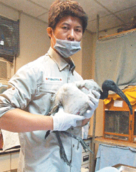 一隻埃及聖(瞏鳥)因飛尾羽嚴重折損,由苗栗縣政府轉送農委會特有生物研究保育中心野生動物急救站處理。李東憲攝