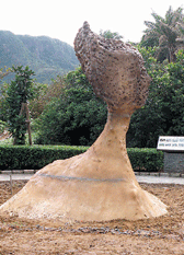 【本報北縣訊】台北縣北海岸熱門景點野柳女王頭,因為風化嚴重,為免熱情遊客碰觸,提早「斷頭」,野柳地質公園斥資百萬元,打造「山寨版」女王頭供拍照(圖/陳靜萍攝)。