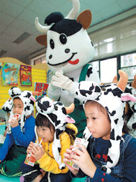 董氏基金會昨天宣導每天兩份牛奶,小朋友健康長高高。趙文彬攝