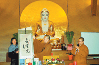 最後,心培和尚代表道場頒發墨寶給護持建寺義買大師墨寶功德主劉麗嫦,並應大眾之請,為購書者簽名。