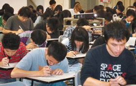 台南成功大學一百四十位學生在授課老師依昱法師的帶領下,也誠心正意地抄寫《心經》。圖/人間社記者心澄提供