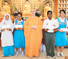 新山佛光基金會頒發「佛光教育獎助學金」,給柔佛和雪蘭莪州二十二所大專院校、中學,有巫、華、印三大種族七十位學生受惠。人間社記者黎材芳攝