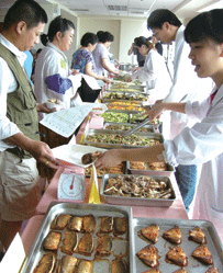 糖尿病友取用自助餐時,最好每道菜都經磅秤秤重,避免過量。記者張明慧/攝影