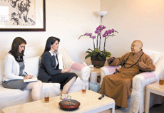 【人間社記者覺皇洛杉磯報導】聯合國NGO和平促進會發言人Gina Otto與人物雜誌(People Magazine)記者Debra Springer,二十日到洛杉磯西來寺拜訪佛光山開山星雲大師,以現代社會問題如男女平等、女性教育、心靈革命、人際關係、環境保護等專訪大師。