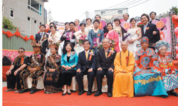 由縣長曹啟鴻擔任主婚人,屏東科技大學校長古源光擔任證婚人,縣府秘書長鍾飾擔任介紹人,並禮請佛光山高雄佛教堂住持慧僧法師及屏東天主堂范濟國神父為十對新人進行宗教祝福。(人間社記者心年攝)