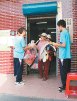 【人間社記者淨意田厝報導】三個多月前遭逢「莫拉克八八水災」的災民,家中物品多已沖毀流失,佛光山慈悲基金會動員義工整理大批衣物,十九日前往屏東縣林邊鄉田厝村發送棉被、墊子及衣服給村民。村民個個笑容滿面,村長王賜霖更是開心,頻頻感謝佛光人的愛心。