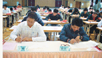 【人間社記者心茂南投報導】南投均頭中小學在田正美校長號召下,響應「百萬心經入法身」全球抄經祈福活動,十九日在佛光館大禮堂抄經,一百二十位教職員、家長及學生參與。(見圖/人間社記者黃慧敏攝)