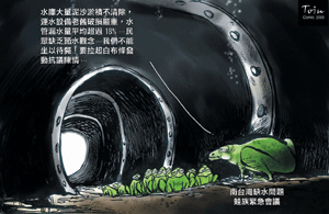 除了天氣型態改變,其他人為因素也影響水資源的使用效率,像是颱風帶來大量泥沙淤積水庫,造成水庫蓄水量不增反減,政府卻又端不出徹底清除的措施;其次,全台運水設備老舊、破損嚴重,輸送水資源的水管漏水量平均超過百分之十八,水資源從水庫配送到用戶的過程浪費過多;還有,民眾缺乏節水觀念,在先天不足後天失調下,造成南台灣的水資源使用處於恐怖平衡,隨時可能陷入旱荒危機。