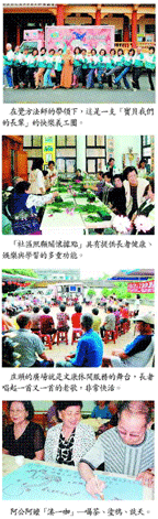 參與「樂活農村‧全民關懷」活動,營造共享資源、老人相邀作伴、互相扶持的銀髮生活社區,恢復原有的傳統美德,提升生活品質,保存善良民風,團結「社區意識」,作伙愛護鄉親和土地。老人家以貢獻才藝的方式關懷社會,再度創新「高齡新價值」。