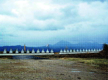 上車吧,心裡嘆口氣,付了15元。四十分的車程,司機半路幫忙同村的朋友載貨,延擱到十一點二十分,才看到一路接連不斷的白塔。