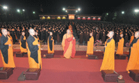 五日晚上,大雄寶殿的灑淨法會,開啟了此次的靈山盛會,由佛光山寺住持心培和尚主法,帶領五千信眾,為十方法界一切有情祈福,並祝願社會和諧、世界和平。成佛大道集眾數千人,肅然無聲、羅列整齊,充分展現佛光山信眾的虔誠。(人間社記者莊美昭攝)