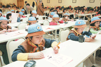 今年佛學會考特色有:英語佛學班學員三十二人,全部身著白上衣深色長褲,整齊赴考