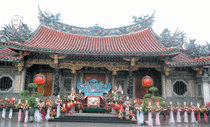 【記者郭書宏台北報導】台北市二級古蹟艋舺龍山寺今年邁入二百七十周年,又適逢圓通寶殿、鐘鼓樓重修落成,昨日寺方盛大舉行周年紀念暨重修慶成典禮,且即日起舉辦系列慶典活動,除長達七天的護國息災祈安植福法會,還有一連串民俗演藝活動、音樂會,及水燈遶境活動。