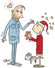 耶誕節快到了,許多幼兒園或學校裡,都有跳蚤市場或交換禮物的活動,趁著年前與孩子檢視家中的物品,把不需要的玩具、衣物整理出來,讓這些東西可以再利用。如此,躺在您們家裡塵封已久的物品,可能變成別家廳堂上的展示品,也可能成為育幼院孩子的寶貝;而一個交換禮物的小小動作,也可以讓孩子感受到人與人之間親密的互動。