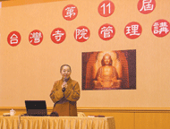 【人間社記者有義大樹報導】佛光山寺舉辦的「第十一屆台灣寺院管理講習會」,昨日進行第二天課程,主辦單位邀請國際佛光會中華總會秘書長覺培法師講演「佛教與非營利事業經營」(見圖/人間社記者有義攝),以佛光山組織為例,介紹佛教與非營利組織(NPO)的社會功能兩者之關係,說明出家眾與在家眾的人力組織分工,以「四大宗旨」推行「三好」、「四給」弘揚佛法為方向。