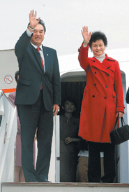 海協會長陳雲林夫婦結束五天訪台行程,昨天中午從台中清泉崗搭乘華航離台返回北京,海基會副董事長高孔廉等人送機。曾吉松攝