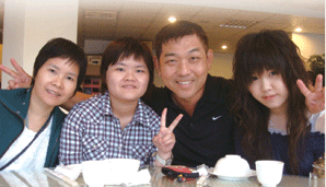 許榮富居士全家福,左起:太太吳淑敏居士、長女裴伶、許榮富居士、次女家慈。吳淑敏居士的告別式,今天於佛光山舉行。
