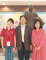 就讀英國蘭卡斯特大學博士班,同時也是南台佛光青年團團長的蔡宛靜(左),一家人都學佛更行佛,歡喜服務大眾。人間社記者有義攝