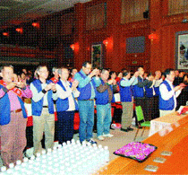 【人間社記者王玉琳、林喜楠大樹報導】為新的一年討個吉祥,連續幾年都帶領會員到佛光山朝聖的南海觀音文教基金會總裁吳天池,今年也不例外,三日清晨與基金會近兩千位會員到佛光山朝山許願,佛光山開山星雲大師也特別與會員接心開示,指出金錢有起落、有多少,唯有佛祖、信仰、因果不會辜負大家。 (人間社記者詹振銘攝)