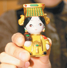 今年到天后宮點燈,送的媽祖公仔和去年版本不一樣,是更Q的Q版媽祖(圖/林宛諭攝)。鹿港天后宮副總幹事劉家汶說,今年安太歲、光明燈、文昌燈、拜斗燈、月老姻緣簿仍是一人六百元,若一家子人數多,也可考慮安閣家平安斗,還有公司行號特別喜歡點財運亨通斗,而民眾也可上網登記點燈。