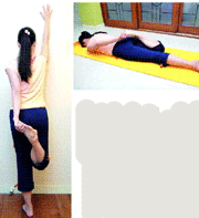 基本動作:站立姿勢預備,左手於身後輕握右腳腳尖,將右腳跟往臀部方向輕拉,保持自然呼吸,停留二十秒。(換邊動作)