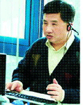 他認命卻不認輸,工作的一年裡,至少有三個月要參加電腦和語文技藝班,他笑說最愛和法師、修女、企業主管、還有國中生各階層的人一起談天說地,因為能為生活及工作添加豐富色彩。(記者李祖翔攝)