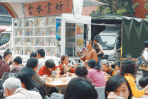 屏東講堂為紀念佛陀成道的因緣,與佛光會屏東各分會自三日起,在十二個社區送出五萬份臘八粥與屏東縣市居民結緣,分享佛陀加被的溫暖。二十二日也是雲水書坊在屏東啟用一周年慶,屏東講堂特地舉行「法寶節暨雲水書坊屏東‧佛光山行動圖書車周年慶」活動,住持妙璋法師帶領五百信眾祈願祝禱、一起吃臘八粥、唱生日快樂歌,祝雲水書坊能將書香送遍屏東各個地區,讓更多人智慧開啟,為國家謀福利。(觀慧)(人間社記者許夏子攝)