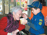 溫馨臘八粥 老人心頭暖 |2010.01.25 語音朗讀 759觀看次 字級 大 中 小 台南縣新營講堂的義工二十二日備辦上千碗臘八粥,分送新營地區公私立機關團體、獨居老人。佛光童軍團協助送臘八粥到新營市欣園養護中心,童軍祝老人家春節愉快,長者都稱讚這些孩子很乖。圖為鄭大寬(右)餵一位阿嬤吃粥,畫面溫馨。圖與文/聯合報記者吳政修 前一篇文章 《 南屏別院歲末感恩茶話會》展示弘法成果 感謝佛光山頭家 下一篇文章 佛光山三好沙彌人偶 陪您過年 熱門新聞 01奉行四給 劉宗澤獲昆大傑出校友獎2025.10.3002【人間有愛 】提早十分鐘2025.10.3003人間佛教聯合總會赴梵蒂岡 參與宗教對話宣言60周年慶2025.10.3004桃園花彩節 周末大溪登場2025.10.3005【寶島踏查】新竹湖口老街天主堂2025.10.3006輝達總部選址確定 落腳北士科T17、T182025.10.3007燕子口堰塞湖消失 台8線開放通行 2025.10.3008推廣兒童歌仔戲 鄉村巡演明開跑2025.10.3009習川會今登場 台海議題受矚2025.10.3010以控哈瑪斯違反協議 再空襲加薩2025.10.30 訂閱電子報 台北市 天氣預報 台灣一週天氣預報 相關報導 緬懷星雲大師 全球佛教學者暢談人間佛教245校雲端交流 凝聚三好共識推廣生命教育 林聰明獲特殊貢獻獎西方寺瑜伽課 接引民眾結法緣元宵乞龜 390兩大金龜亮相基督城地震10年 佛光山領眾祈願