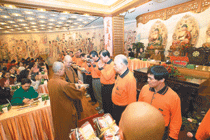 【人間社記者陳秋玉台北報導】佛光山台北道場感謝護法信徒一年來對道場的發心護持,二十四日下午於十四樓如來殿舉行「護法委員接心懇談會」,禮請佛光山寺住持心培和尚開示,上千位護法委員盛裝出席,接受台北道場住持覺元法師精心安排的禮物及祝賀,並聽取各單位報告工作成果。