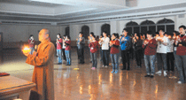 昨晚的「今夜,佛光燦爛」,學員矇住眼睛,在輔導員帶領下摸黑穿過障礙,體會身心障礙者的苦,並分享生命故事,還有歌手、也是佛光青年的邱貴揚與林孝←演唱;在淚水與笑聲中,手中擎起蠟燭,在慧開法師帶領下,誦禱祈願文,祈請佛陀在他們危嶷、困難、懈怠時庇護、啟發、鼓勵他們。