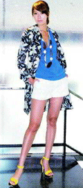 多層次的穿搭,最適合冷熱不定的初春,林又立的亮面黑底藍花輕薄長版外衣,內搭一件同色系背心,長腿妹妹是天生衣架子,把迷你短褲翻出來,無所不能搭,讓女性俐落輕巧的一面表露無遺。
