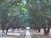 十二月的南投縣,太陽竟還很大(這就是少雨乾旱的原因之一),在農地稍事逗留後,就滿身熱氣了。英傑兄又驅車載我們到附近的一家「桂花森林」,說是在地的一戶人家,自祖先開始即在此種植桂花,百年來,一百多棵桂花樹,不僅巨大成株,幾成一片森林了,這更是很少見的庭園風光呢。想想,我前年和同事到台北縣安康的台大農場參觀,農場送我們幾株桂花樹苗,我把樹苗種在家居旁民眾健康中心的庭園裡,有工友天天為它們澆水,但過了兩年了,似乎還沒見它們長高多少,還是弱小不禁風的樣子呢!而這些巨大桂花樹,不知熬了多久,才能此巨大又成林呢?