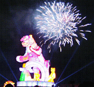 台灣燈會二十一年來首次在嘉義市舉辦,昨晚試燈彩排「未演先轟動」,台灣有史以來最大的主燈七彩金虎,在長達六分鐘的煙火秀下大放光明,近六萬民眾「搶先」參與這場視覺饗宴。