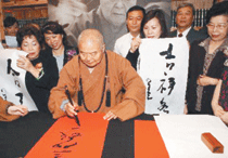 大師現場揮毫,一筆寫成「合十人生」,由佛光山功德主蔡金鍊、蔡吳秀美伉儷典藏;「吉祥如意」由鈺通營造股份有限公司總經理黃國芳、李麗禎典藏