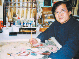 郭恩慂是高雄美濃人,一九八九年從國立藝專(今國立台灣藝術大學)美術科畢業後,就從事細緻繪佛畫工作,脊椎受傷後到私人畫室教素描,每月只有三千兩百元收入,省吃儉用困苦過日,八年前患了「恐慌症」,這期間家人的諒解及支持,再加上虔心修佛,終於戰勝病魔。